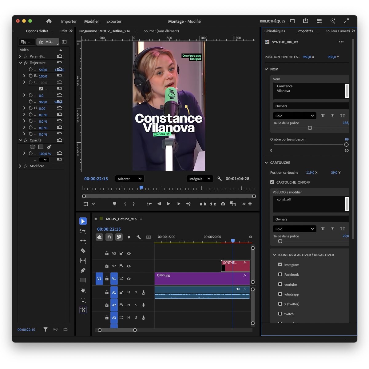 I designed all logos for MOUV’ shows and developed the full graphic and video guidelines for MOUV’, including social content templates and animated motion graphics elements (MOGRTs).
